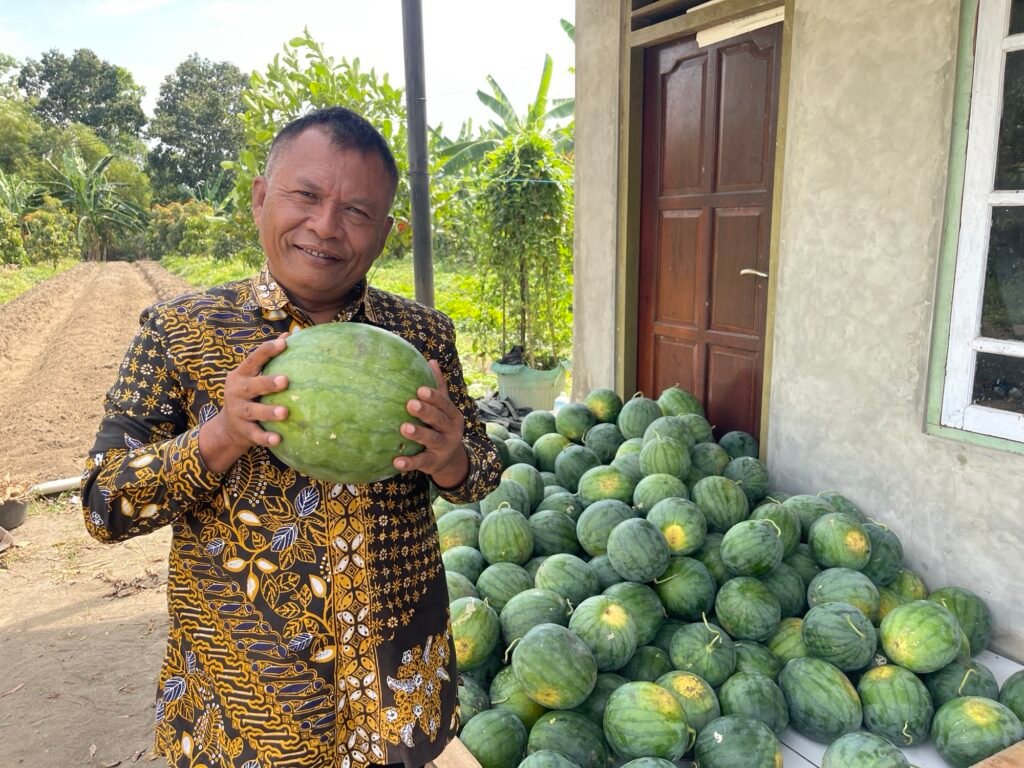 Sejak Juni 2023, Riska menanam pohon alpukat dan kelengkeng sebagai tanaman tahunan, dipadukan dengan sistem tumpang sari tanaman musiman seperti cabe, tomat, semangka, dan brambang. Dengan irigasi tetes yang hemat air, kebun ini tidak hanya produktif, tetapi juga ramah lingkungan.
